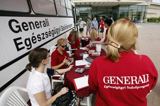 A Generali a Biztonságért Alapítvány két éve folytat egészségügyi szűréseket az ország különböző pontjain. Az alapítvány idén 20 városban összesen 10 ezer szűrést tervez. Az érdeklődők ingyenes vérnyomás-, vércukor-, koleszterinszint-, testzsír-mérésen, szemészeti és bőrgyógyászati vizsgálaton és általános belgyógyászati konzultáción vehetnek részt.