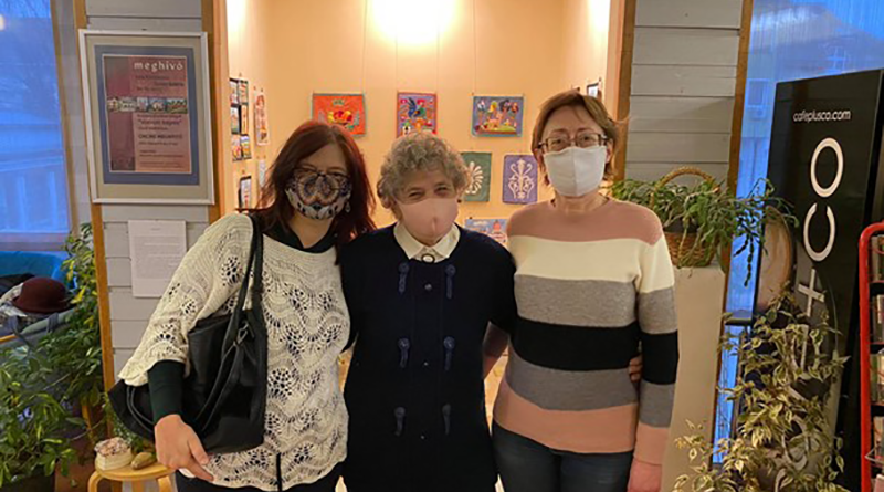 Középen az alkotó, Kovács Aurélné, Magdika lányával, Onozóné Kovács Gabriellával